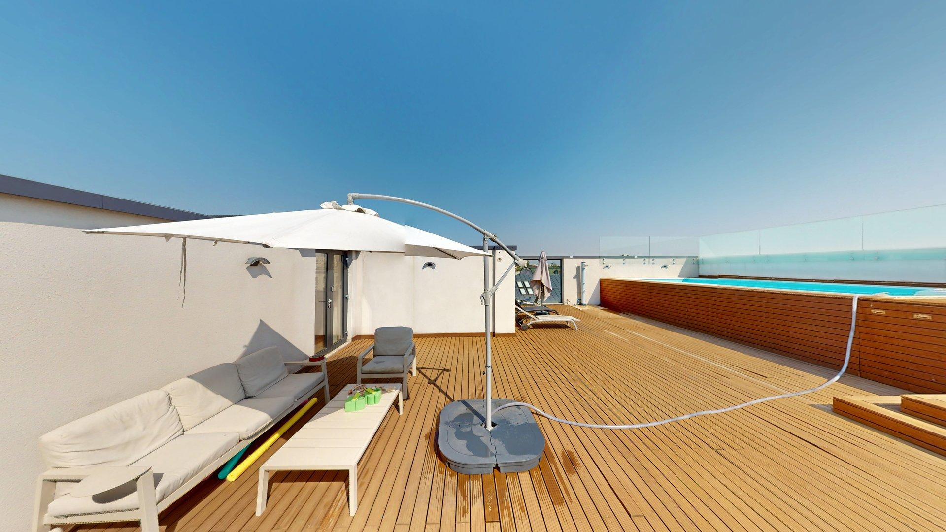 • Piscină panoramică pe terasa clădirii, acces exclusiv rezidenților