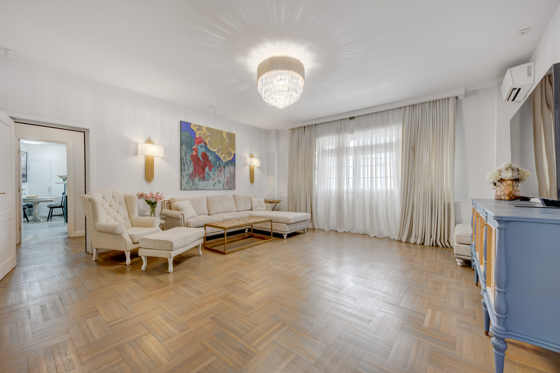 Pozitie excelenta, langa Parcul Carol, cu acces facil la Palatul Parlamentului si punctele de interes ale zonei, intr-o pozitie complet securizata si intima. Apartament high-premium, renovat integral, cu amenajari elegante, tavane inalte, perfect pentru un cuplu dinamic care isi doreste o poveste de locuire unica. Curte privata in proprietate cu acces prin telecomanda, de 250 mp, locuri de parcare, garaj la demisol, terasa pentru relaxare, spatii de depozitare, zona de zi imensa, dressing-uri custom made, complet mobilat si utilat.